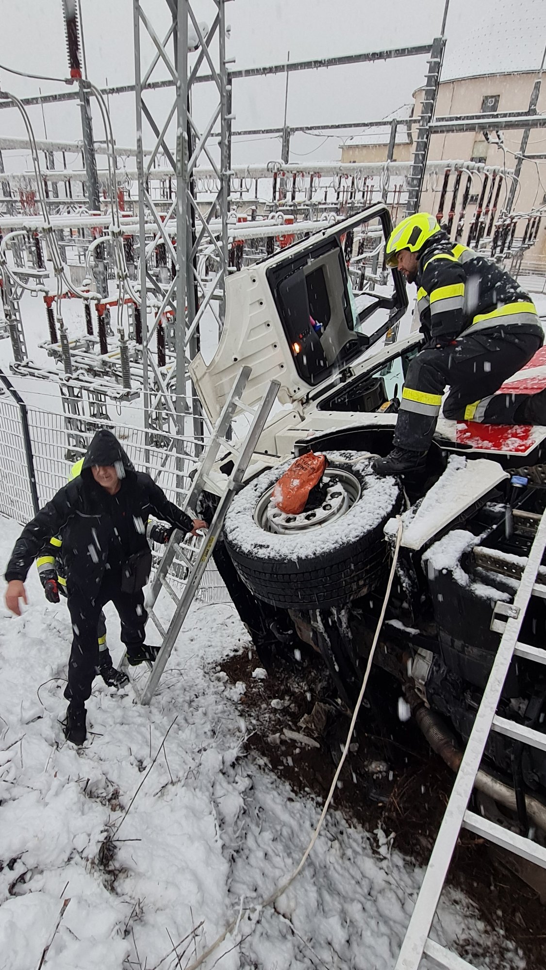 Beim ersten Einsatz kam ein LKW auf einer schneebedeckten Fahrbahn von der Straße ab und rutschte über eine Böschung. Das Fahrzeug kam glücklicherweise kurz vor dem Umspannwerk des Kraftwerkes Schwabeck zum Stillstand. Die Feuerwehr sicherte die Einsatzstelle ab.