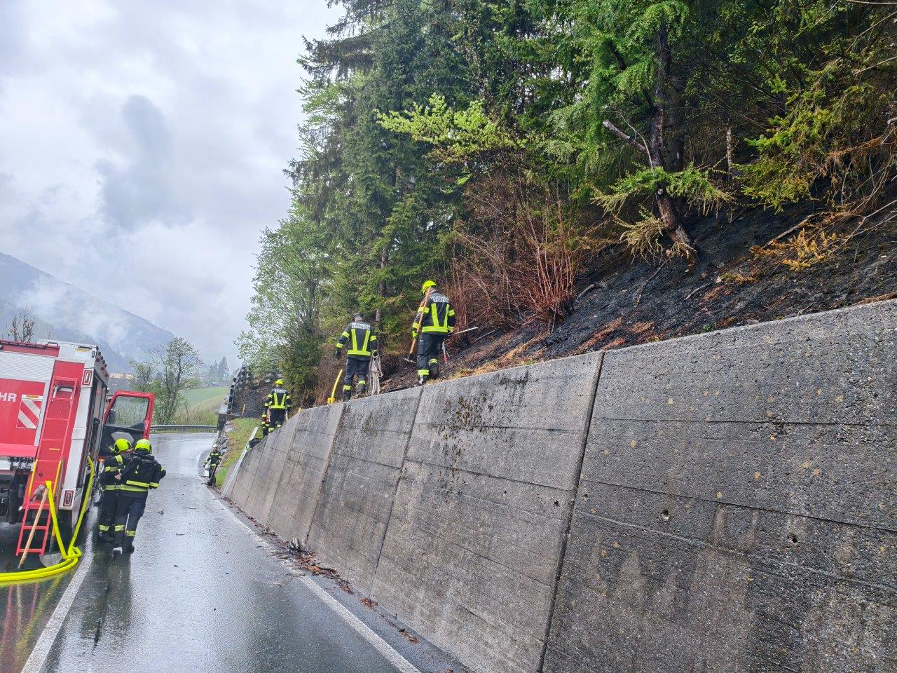 Am 29. April 2026 rückte einige Kameraden der Feuerwehr Lavamünd mit der F-KAT Bereitschaft 5 ins Lesachtal aus, um die örtlichen Kräfte bei einem Waldbrand zu unterstützen. Der Fokus lag auf der aufwendigen Bekämpfung von Glutnestern unter dem Waldboden in steilem Gelände. Leichter, anhaltender Regen erleichterte die Löscharbeiten. Zur Sicherheit wurden die Einsatzkräfte von Spezialisten für Menschenrettung und Absturzsicherung (MRAS) begleitet. Zudem half eine Drohne der Feuerwehr St. Michael ob Bleiburg, Glutnester gezielt zu lokalisieren und die Bodentrupps effizient einzusetzen.